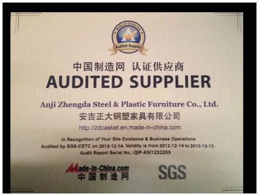 Anji Zhengda Steel & Plastic Furniture Co., Ltd auch als bekannt Zhengda Casket Factory erstreckt sich über eine Fläche von 14.000 Quadratmetern, darunter 11.000 Quadratmeter Baugrundstück.